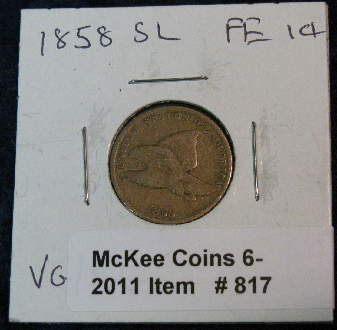 817. 1858 SL Flying Eagle Cent. VG-Obv & AG-Rev.