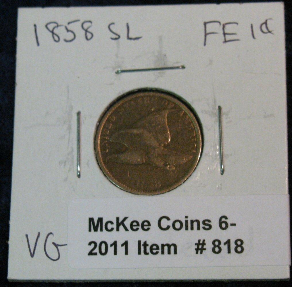 818. 1858 SL Flying Eagle Cent. VG Cleaned.