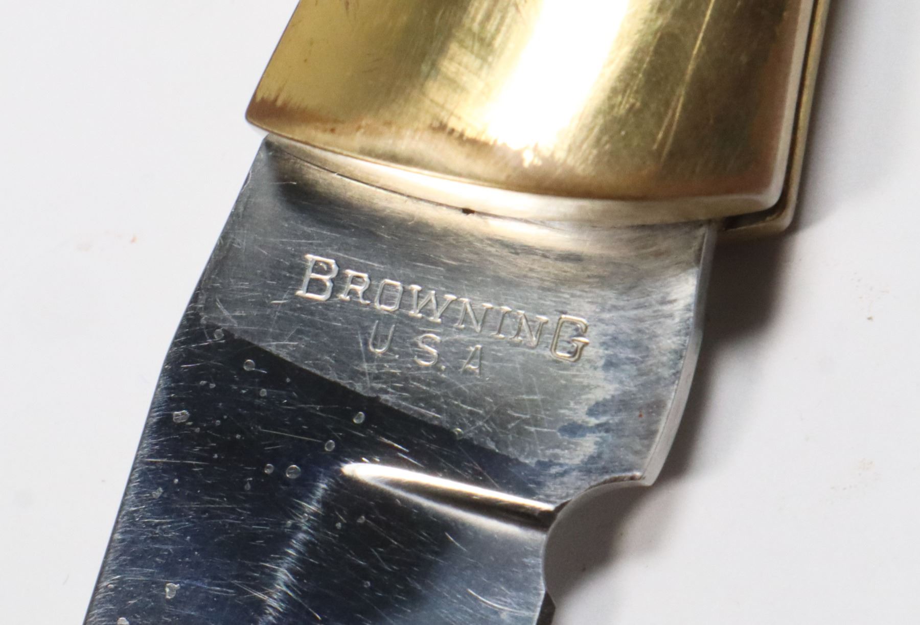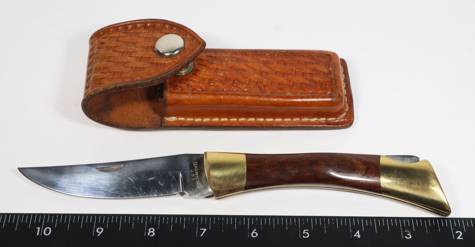 BROWNING UNITED STATES OF AMERICA USA MADE KNIFE W/ MEXICAN LEATHER SCABBARD- SCABBARD MARKED EXCELLENT QUALITY