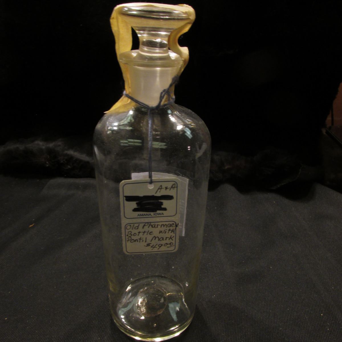 818.Handblown old Pharmacy Bottle with Pontil Mark. Includes glass stopper. 'Doc' valued this at $49.