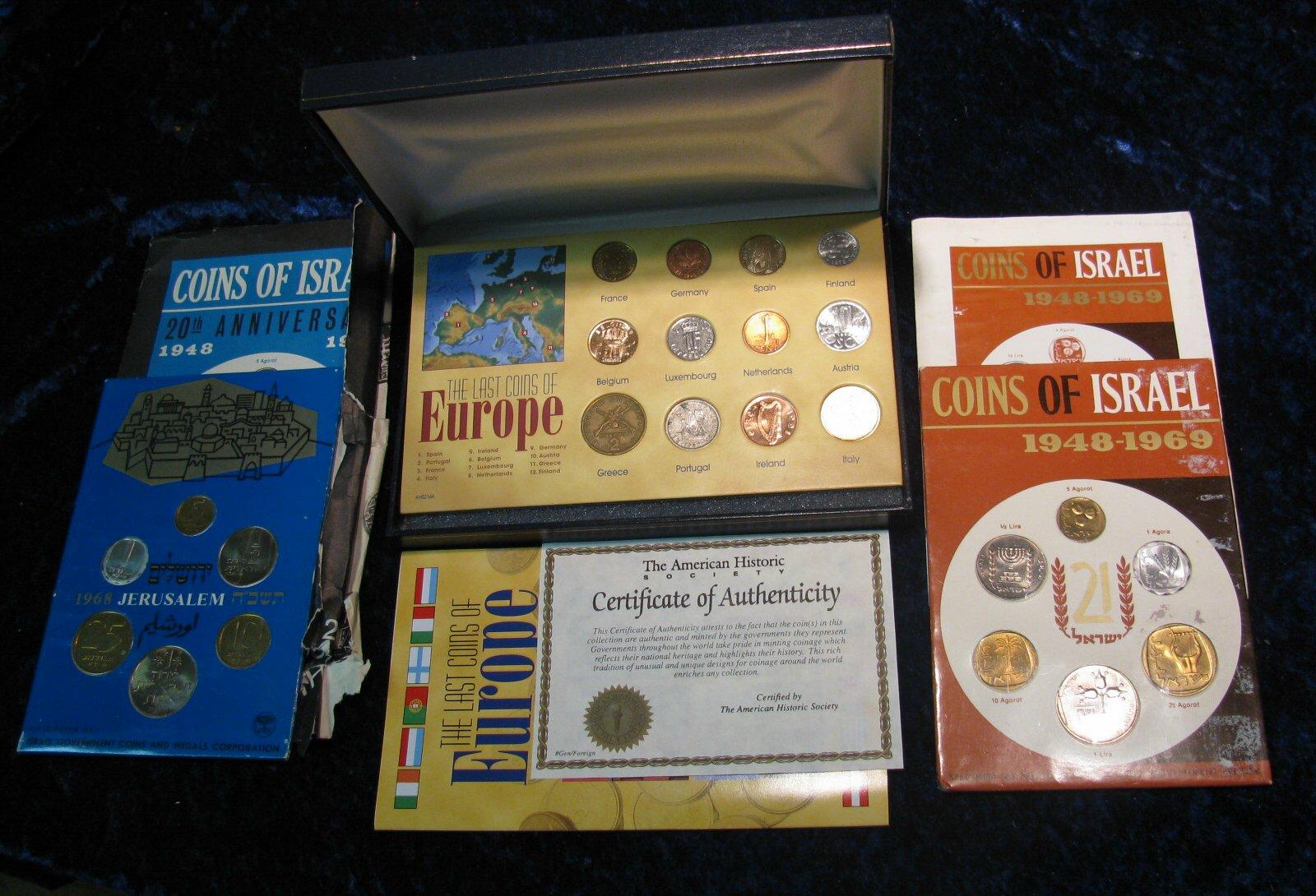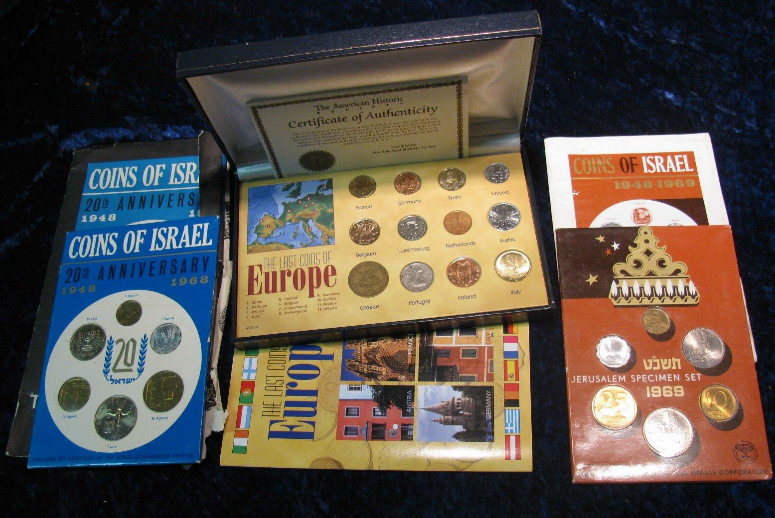 818. The Last Coins of Europe. (12) Coins in Display Case Pre Euro. &b 1968, 69 Israel Specimen Sets.
