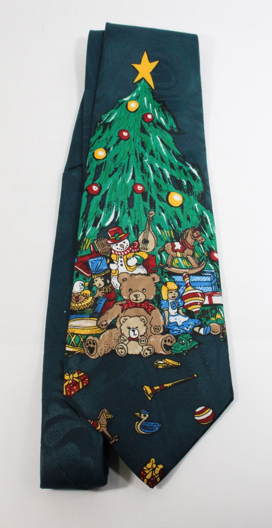 #818 VINTAGE MEN'S TIE CHRISTMAS TREE SCENE W/TAG