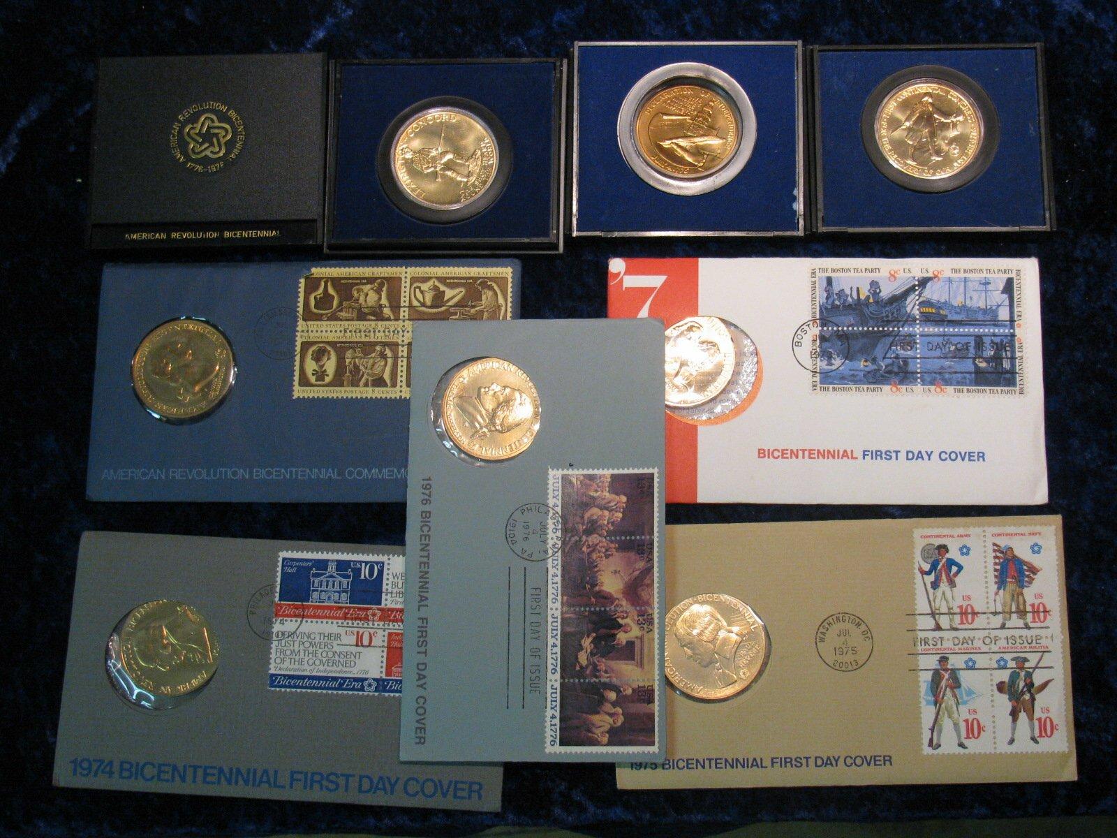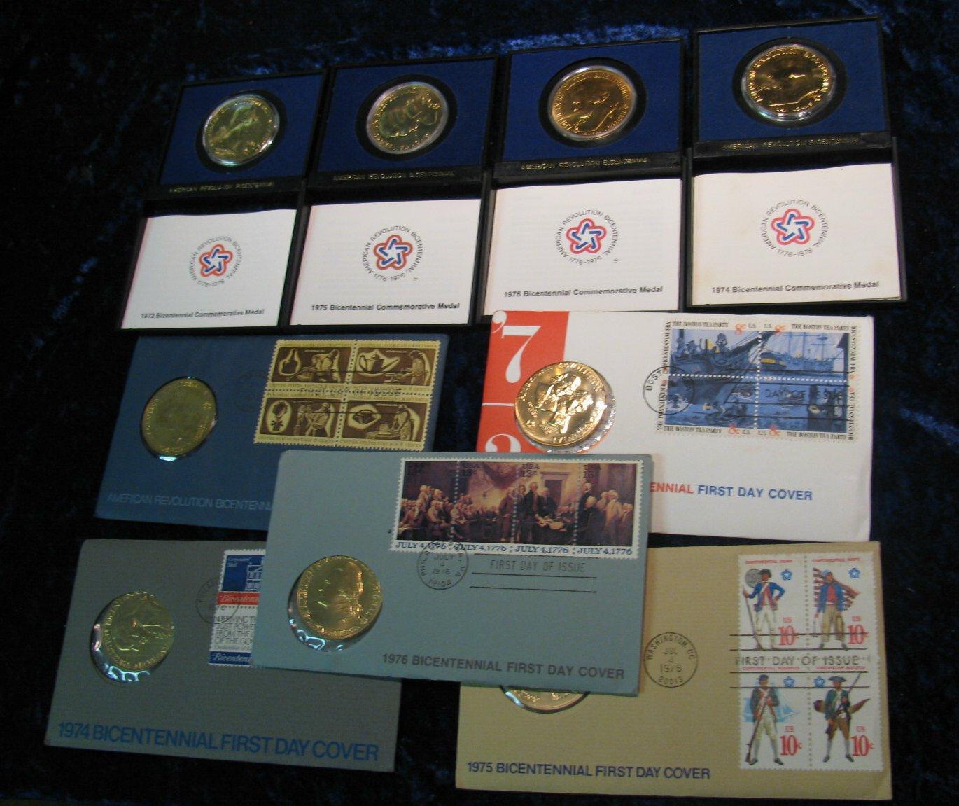 819. (9) Bicentennial Bronze Medals. (4) Hard cases & (5) First Day Covers.
