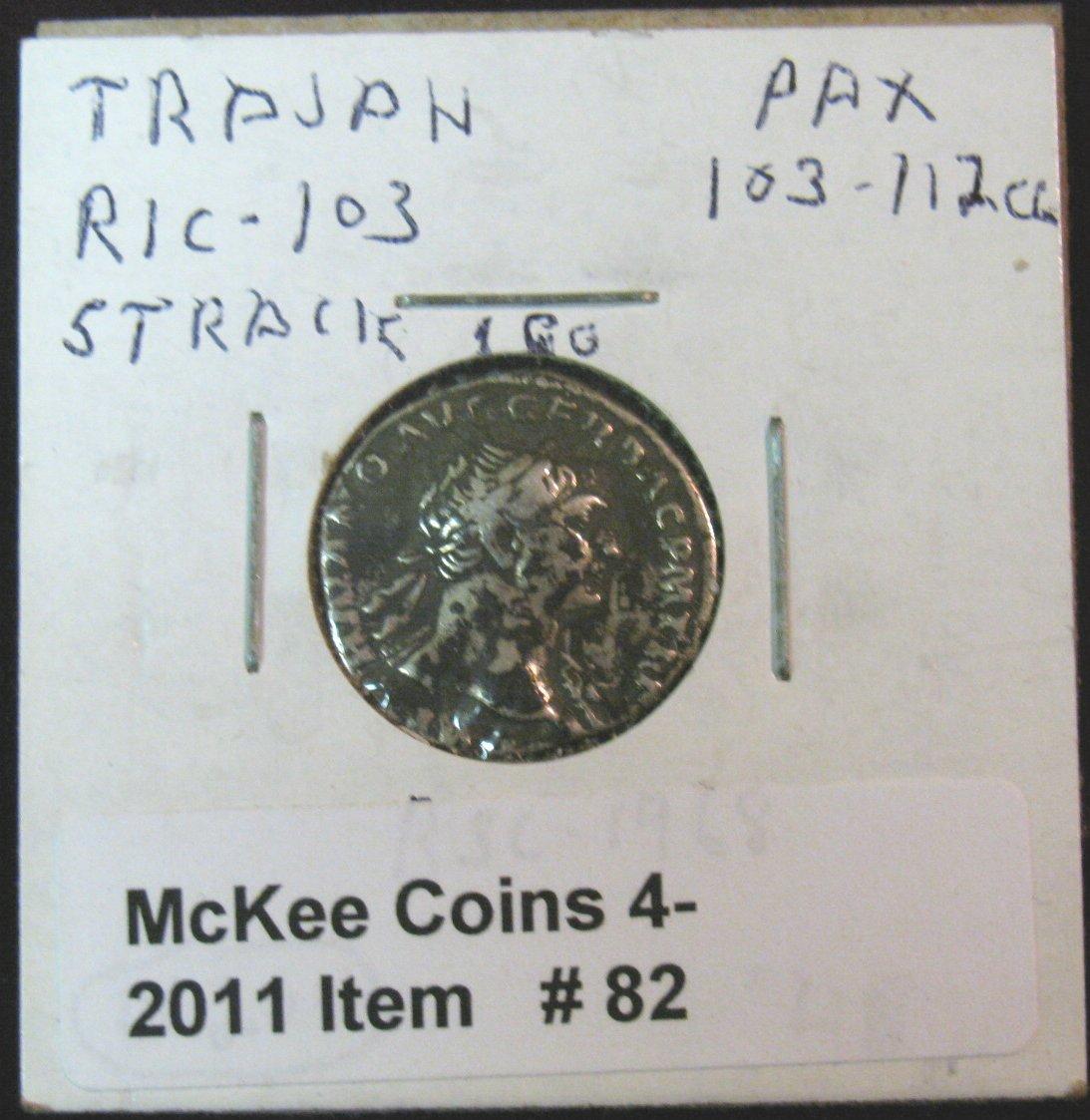 82. 103-112 C.E. Trojan Silver Denarius. RSC-1968.