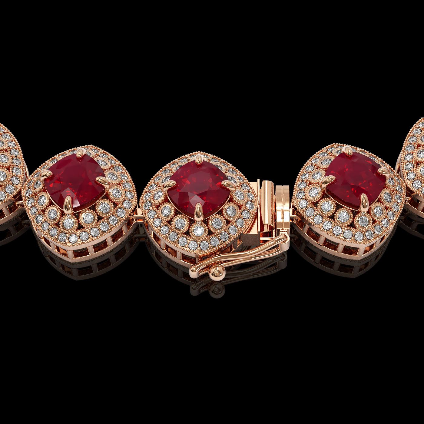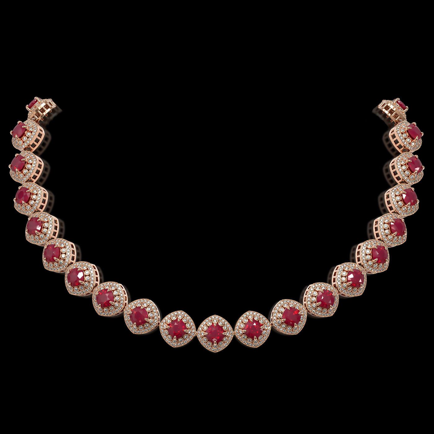 REF-1800H2R - SKU: 44100 ---- 82.17 ctw Certified Ruby & Diamond Victorian Necklace 14K Rose Gold