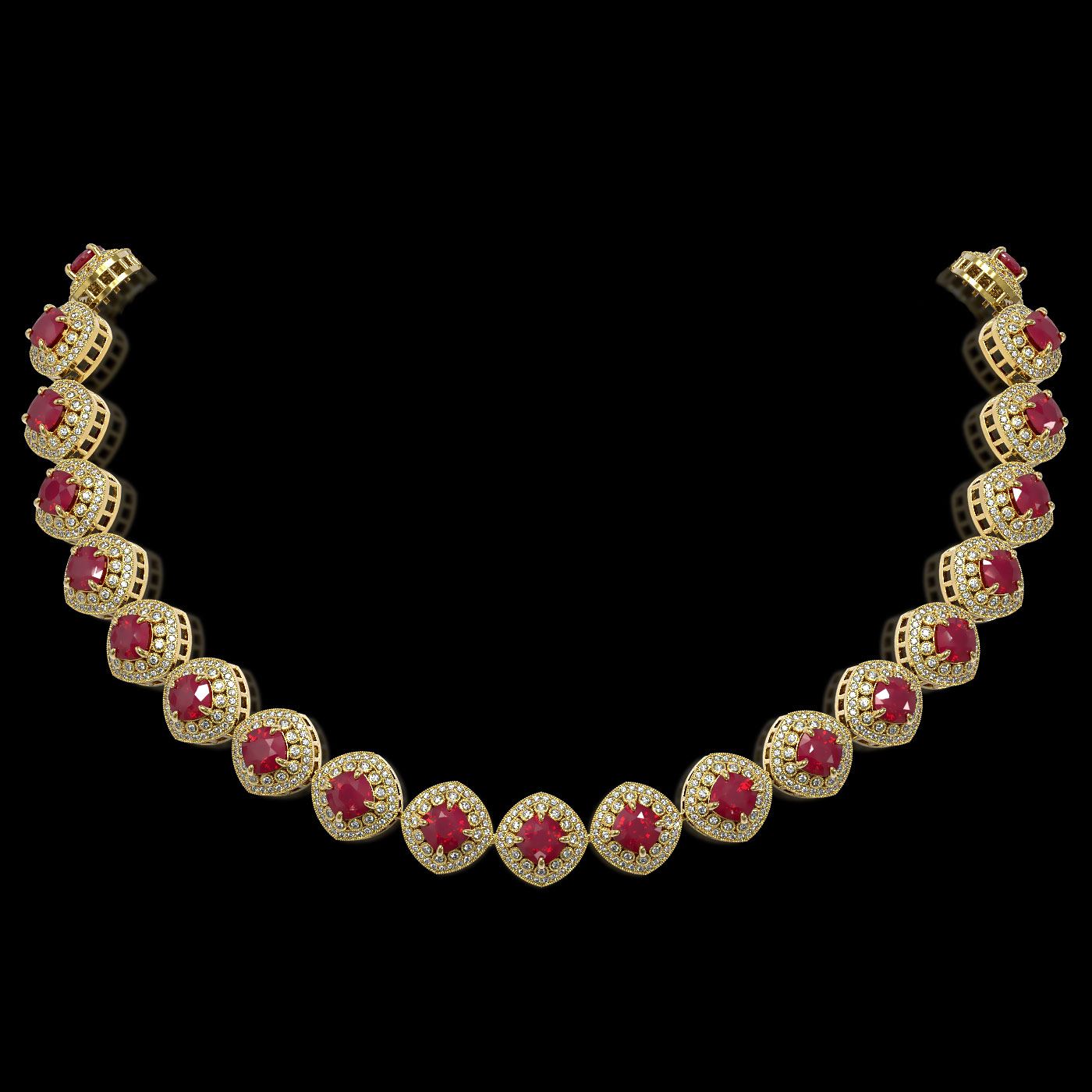 REF-1800K2Y - SKU: 44101 ---- 82.17 ctw Certified Ruby & Diamond Victorian Necklace 14K Yellow Gold
