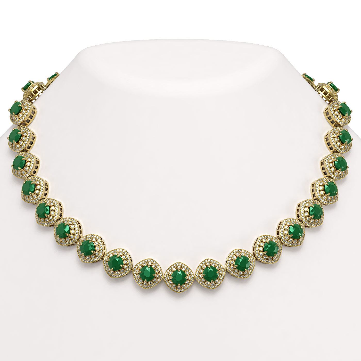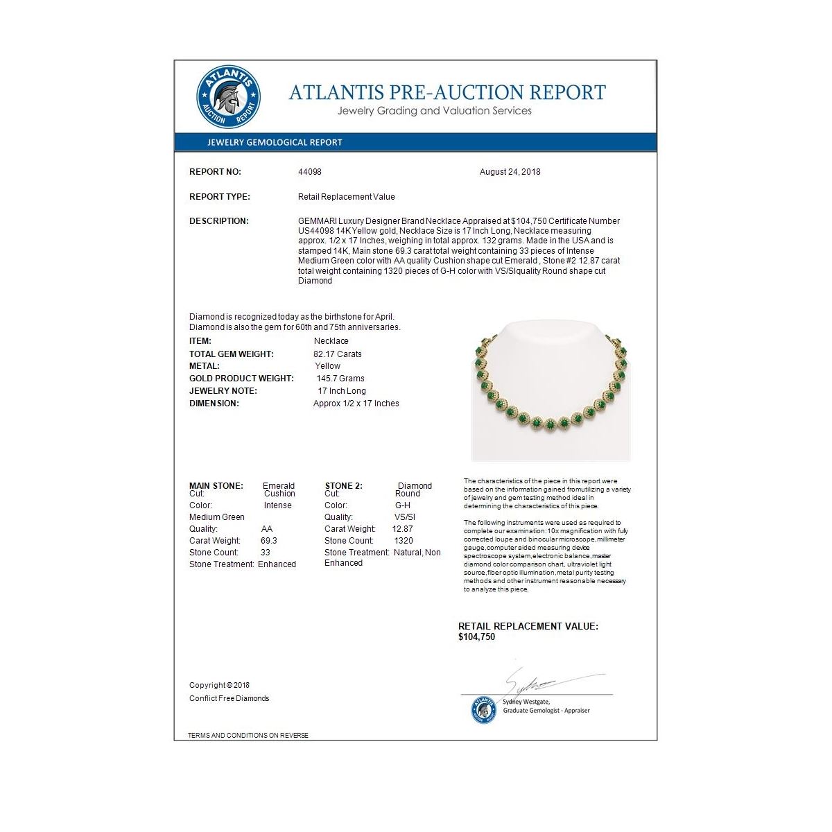 82.17 ctw Emerald & Diamond Necklace 14K Yellow Gold