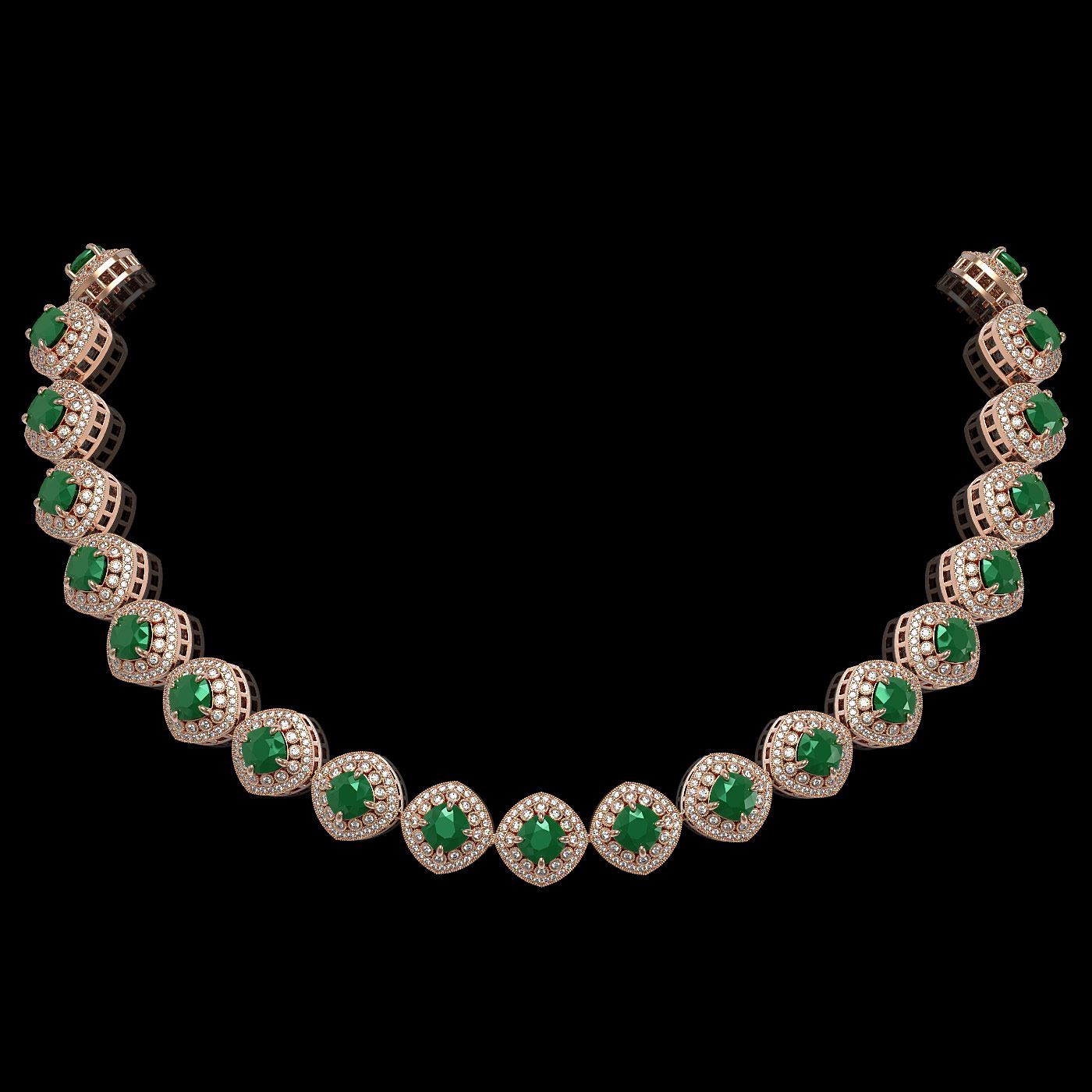 REF-1800F2M - SKU: 44097 ---- 82.17 ctw Emerald & Diamond Victorian Necklace 14K Rose Gold