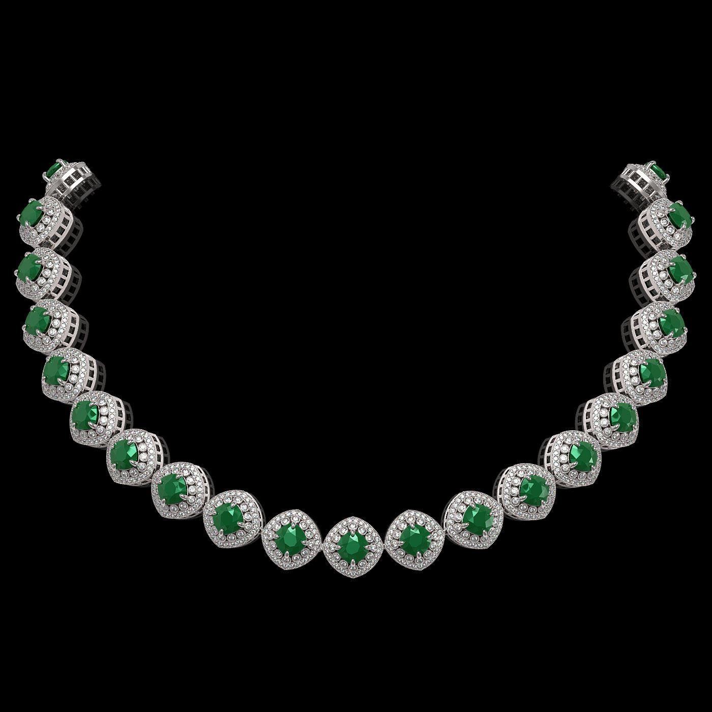 REF-1800A2N - SKU: 44096 ---- 82.17 ctw Emerald & Diamond Victorian Necklace 14K White Gold