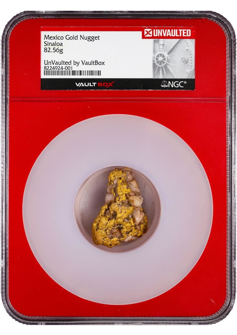 One 82.56 Gram Sinaloa Mexico Gold Nugget NGC Vaultbox Unvaulted Red Core.