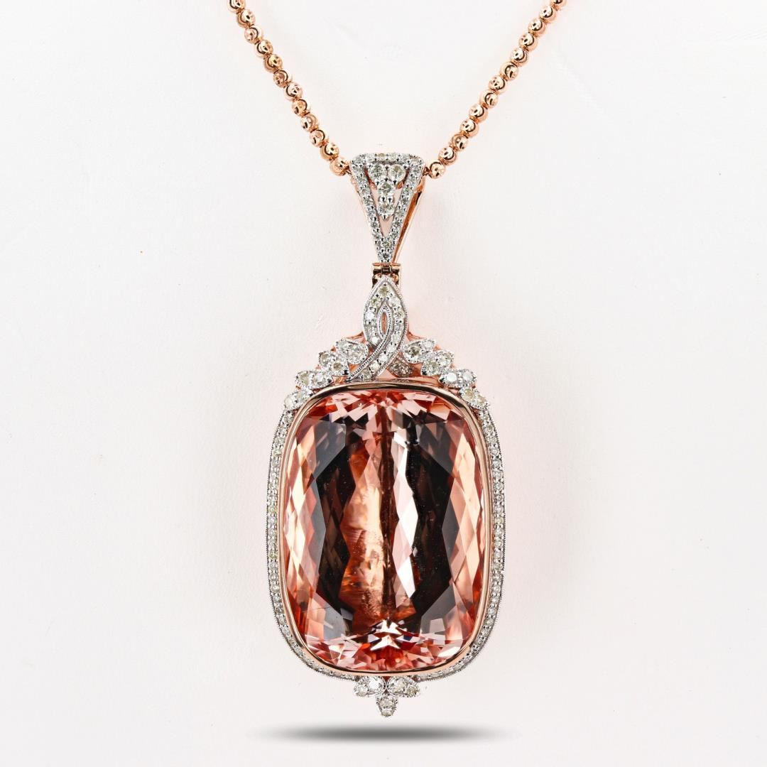 82.69 ctw Morganite and 1.46 ctw Diamond 14K Rose and White Gold Pendant
