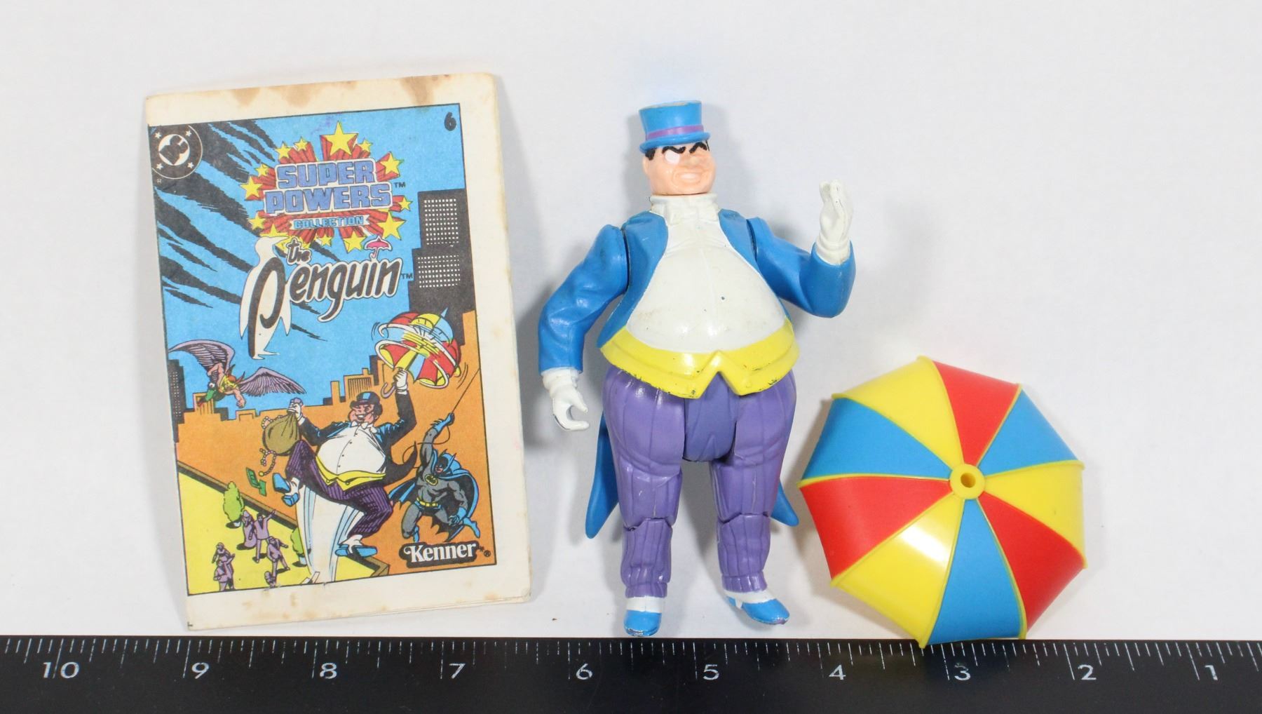 INCLUDES ACTION FIGURE WITH UMBRELLA TOP ACCESSORY AND MINIATURE COMIC BOOK ACCESSORY DETECTIVE COMICS DC KENNER SUPER POWERS 1984 SERIES 1 ACTION FIGURE