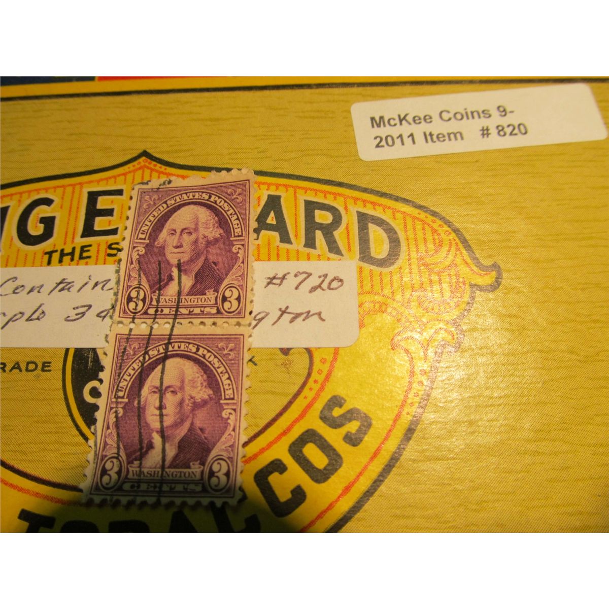 820. Cigar Box 100's #720 3c Washington Stamps. Used.