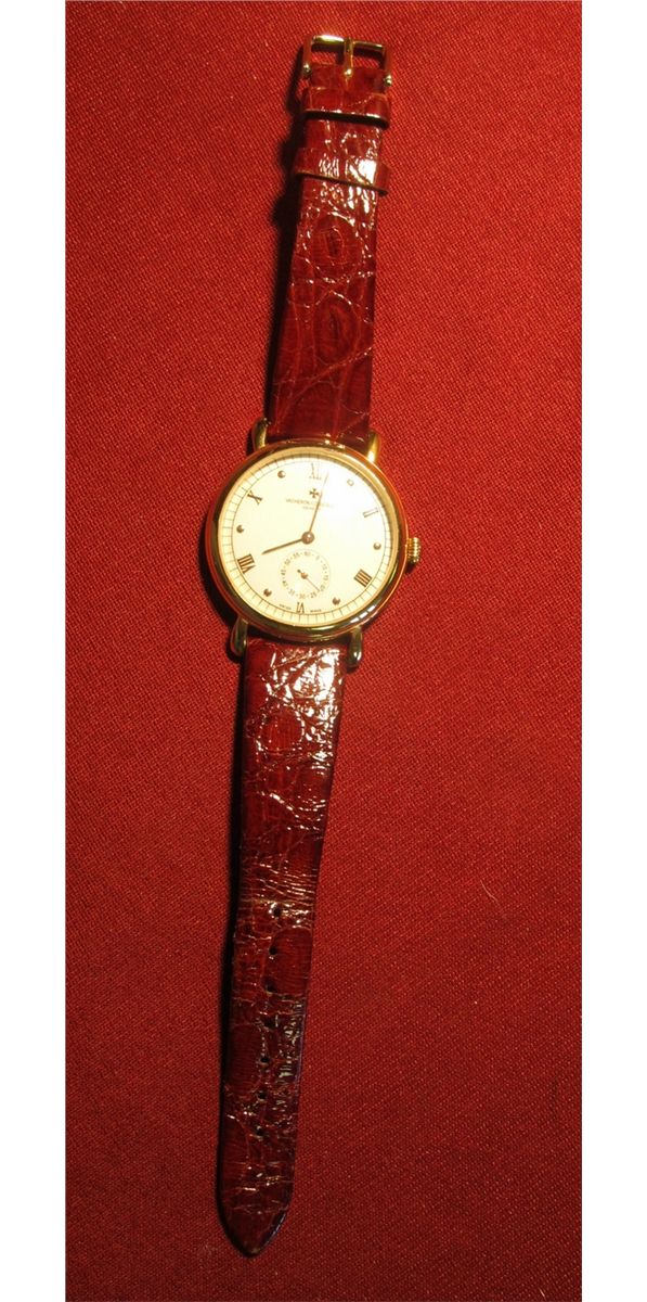 821. Automatic wristwatch – Vacheron Constantin Geneve, Swiss made. Clear view back, crocodile band. Winds, runs, keeps time.