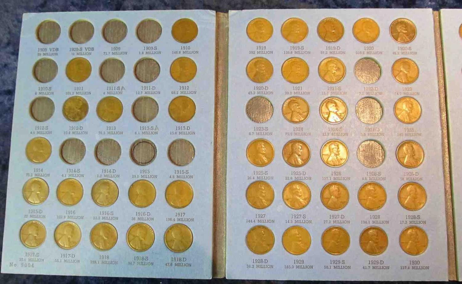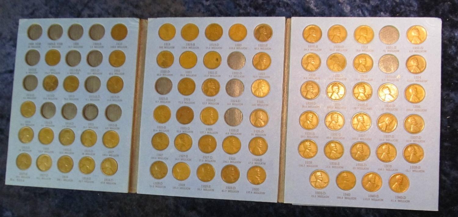 821. Partial 1909-40 Lincoln Cents. 70-Different G-AU in Whitman Coin Folder.