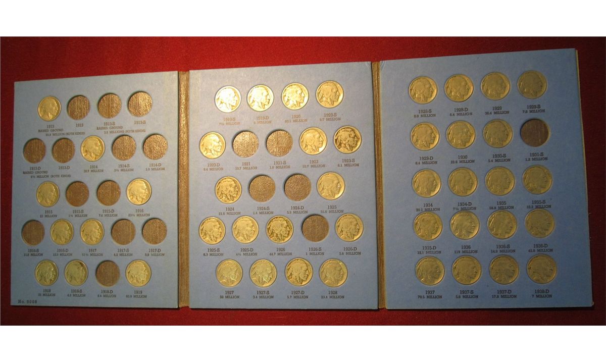 821. Partial set of Buffalo Nickels in a blue Whitman tri-fold album, 45 coins present