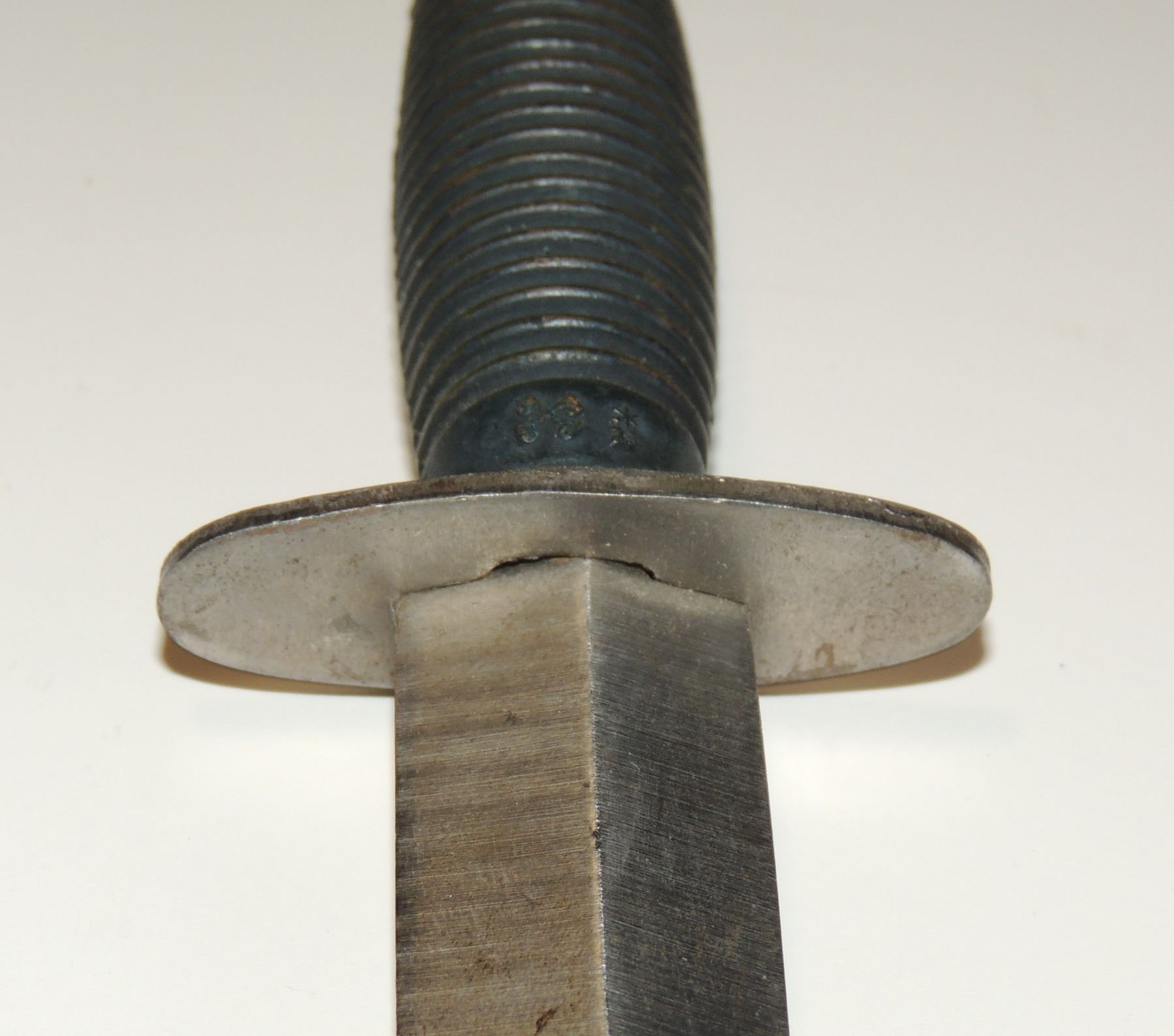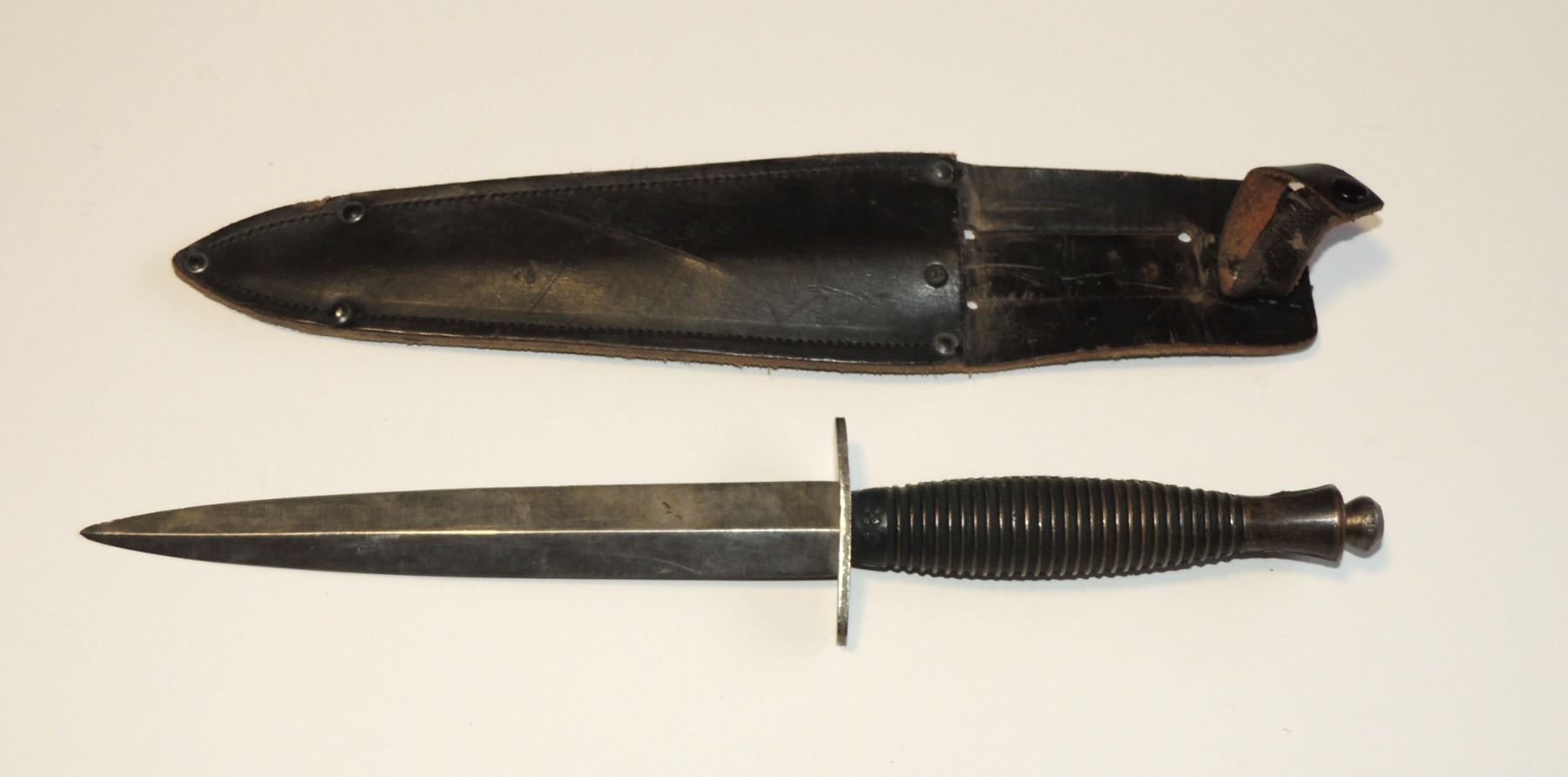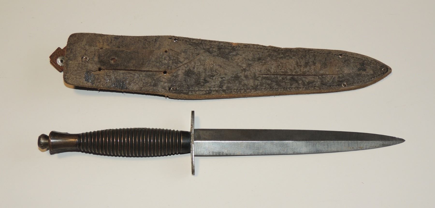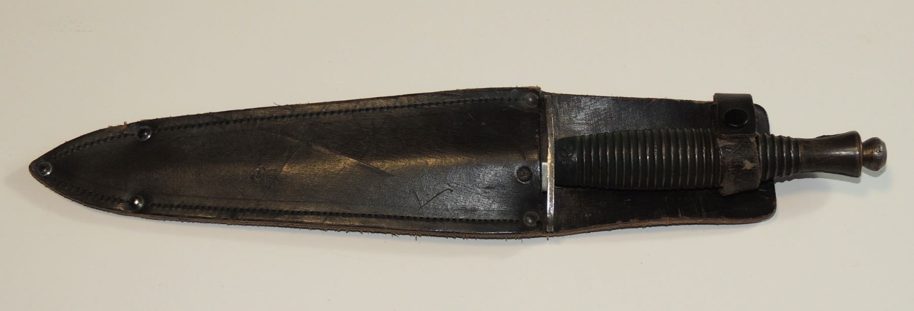LATE 20TH CENTURY MODEL STILETTO COMBAT KNIFE WITH LEATHER SCABBARD SHEATH