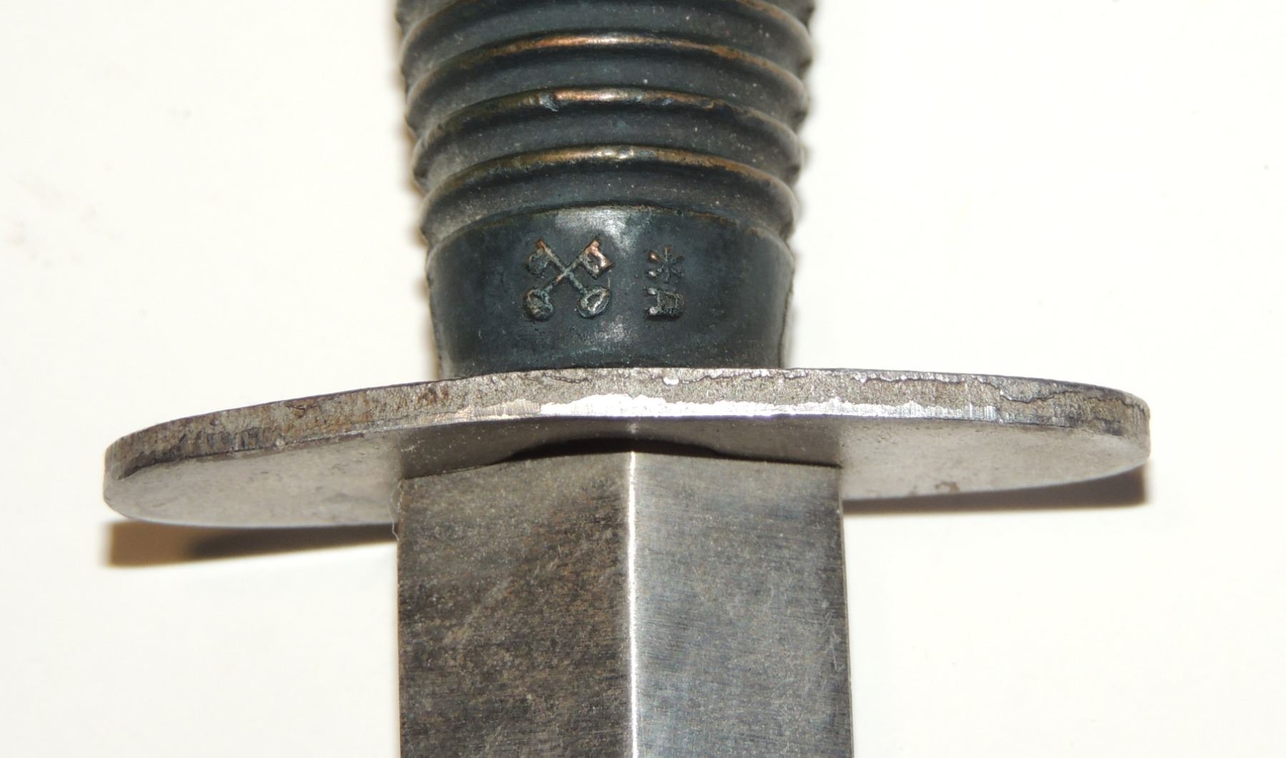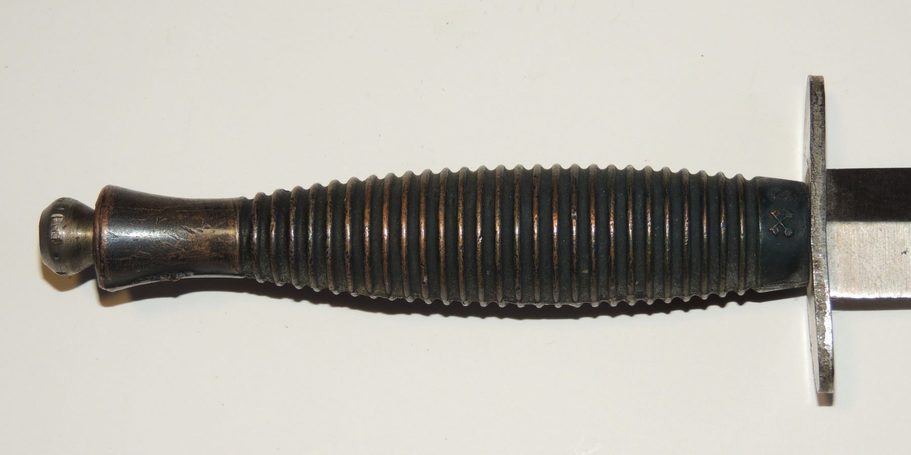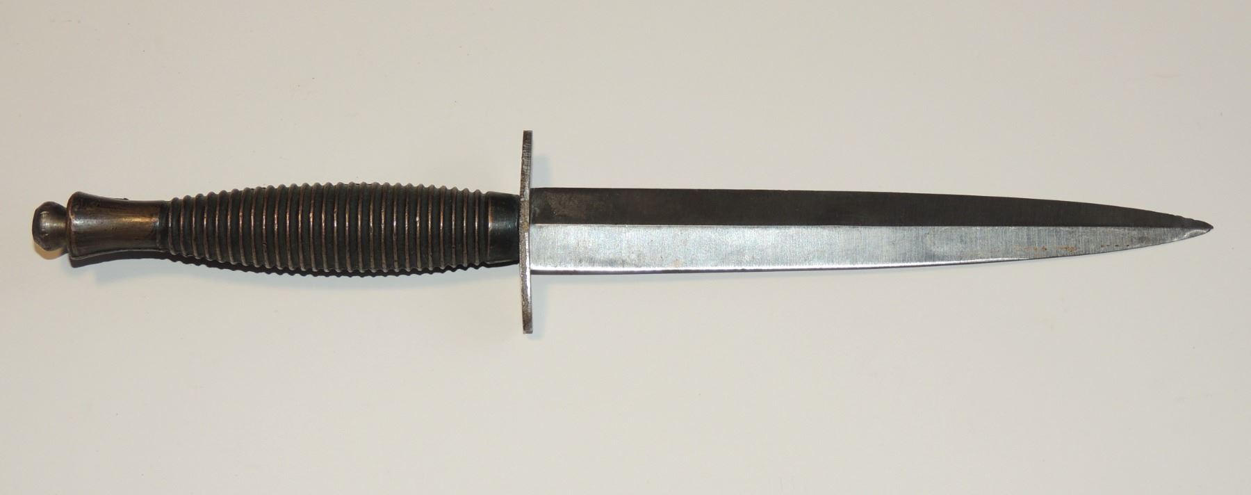 LATE 20TH CENTURY MODEL STILETTO COMBAT KNIFE WITH LEATHER SCABBARD SHEATH