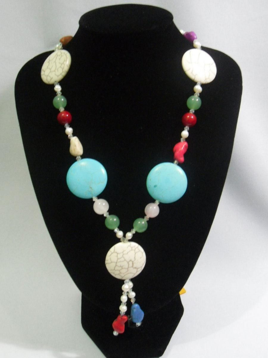 825 CTW MULTICOLOR TURQUOISE, HOWLITE AND WHITE PEARL N **|**|** 825 CTW MULTICOLOR TURQUOISE, HOWLITE AND WHITE PEARL NECKLACE; AUTHENTIC PHILIPPINE PEARLS;SIZE-20INCH ; MSRP: $75