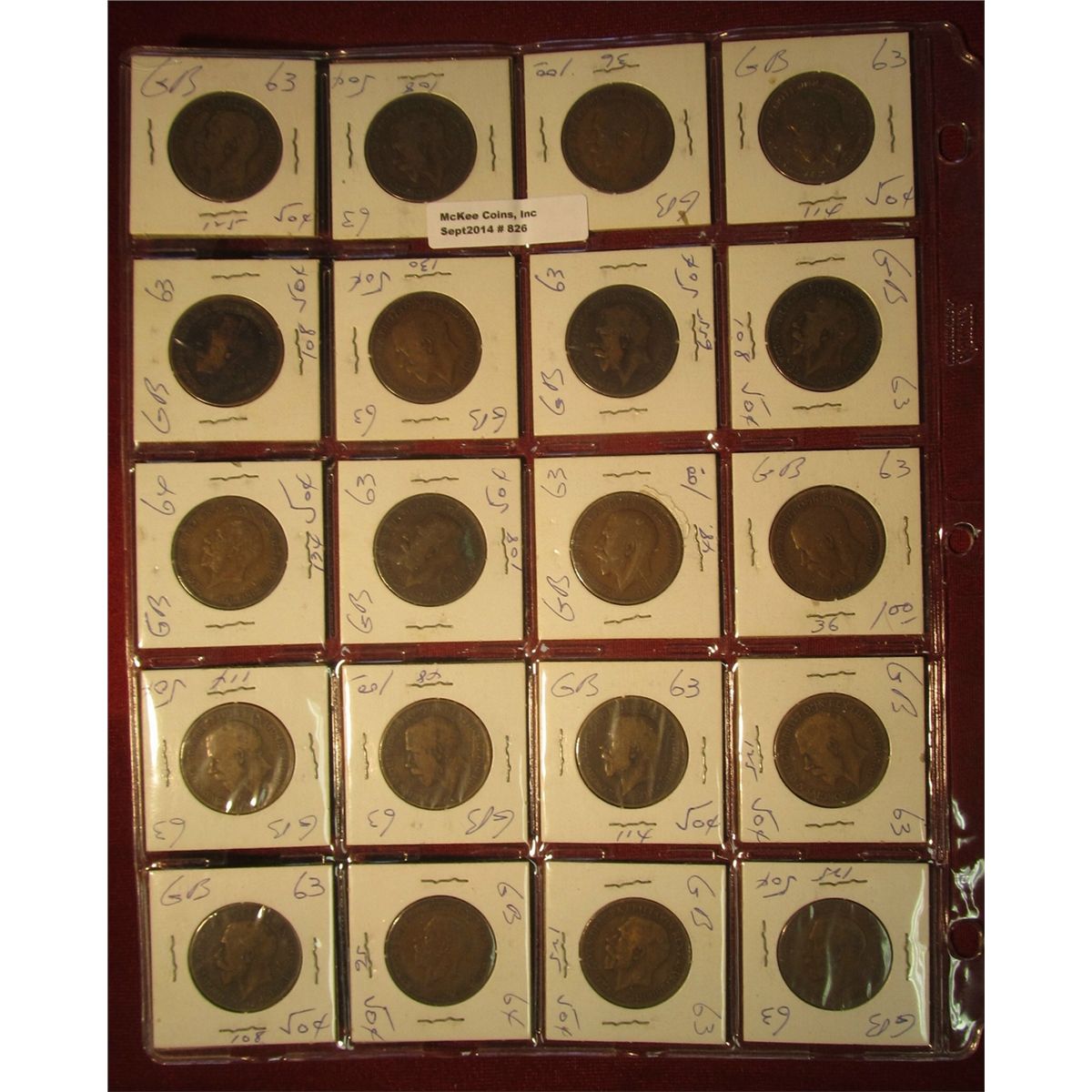826. (20) Great Britain George V Large Pennies, dates range from 1912 to 1936