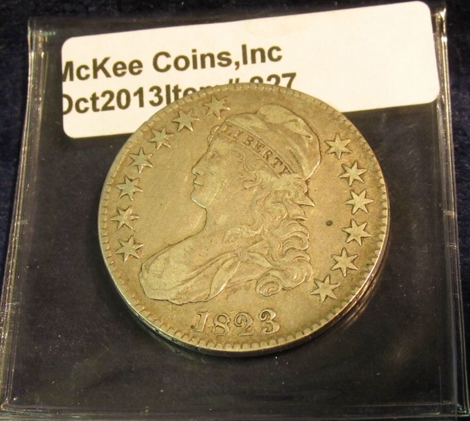 827. 1823 Capped Bust Half Dollar. Overton 123. R1. VF 20. Redbook value $130.00.