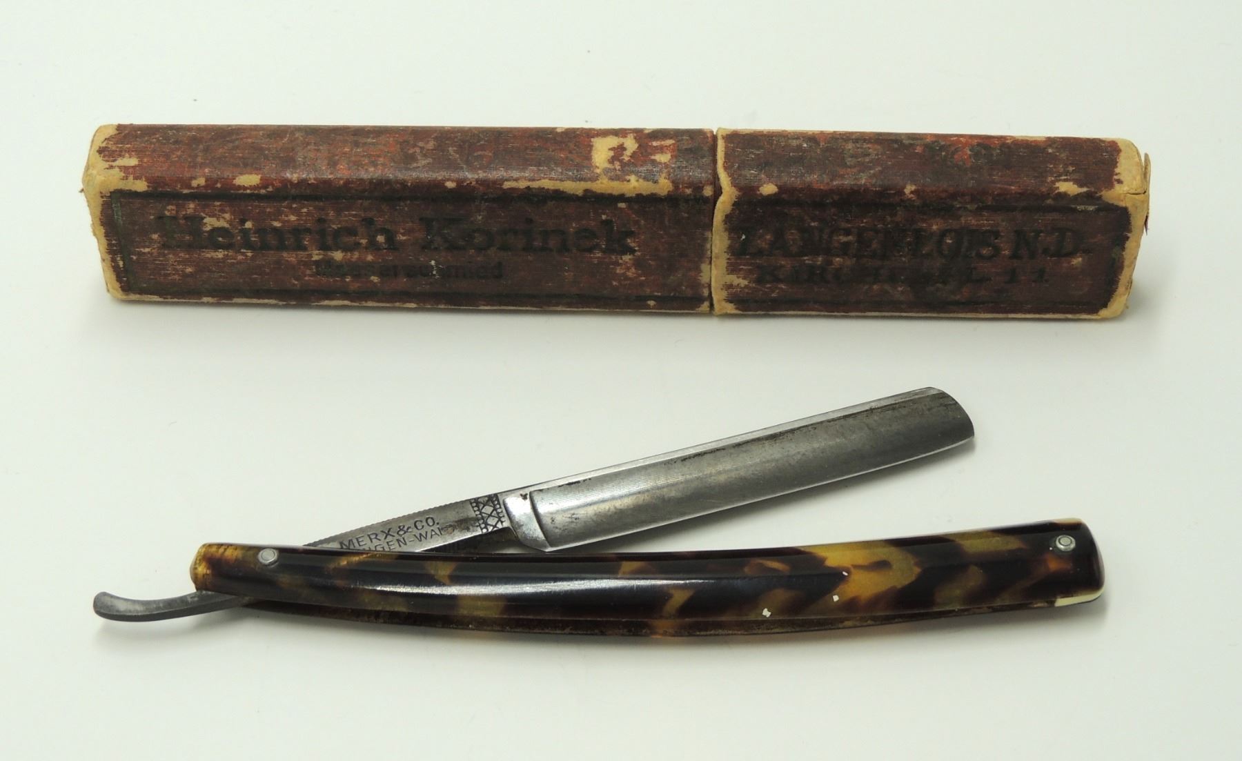 SOLINGEN-WALD ELLAVAS MERX INCLUDESHEINRICH KORINEK BRAND ANTIQUE BOX GERMANY GERMANY BLADE RAZOR