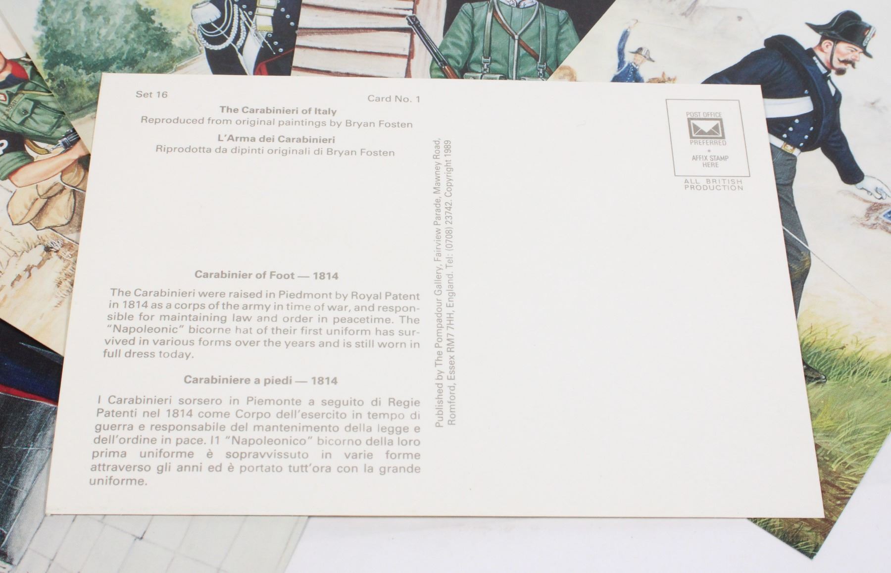 SET OF 6 ILLUSTRATED CARDS NO. 16 THE CARABINIERI OF ITALY IN PACKAGE
