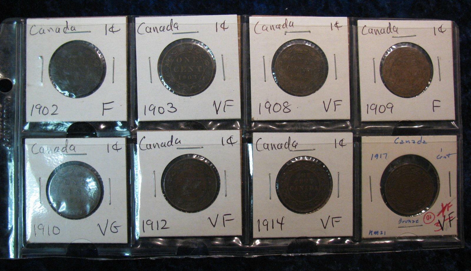 829. 1902, 03, 08, 09, 10, 12, 14 & 17 Canadian Large Cents. VG-VF.