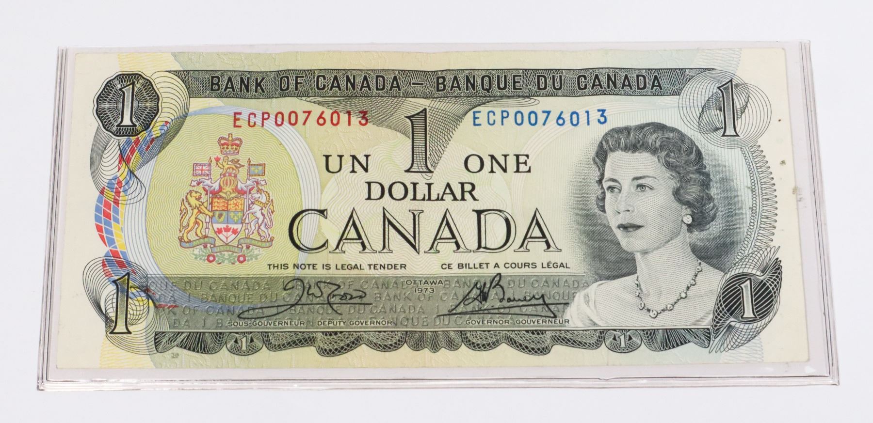 #83 1973 CANADIAN $1 PAPER MONEY NOTE QEII