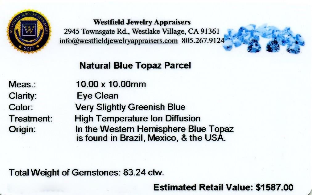 83.24cts Trillion Cut Natural Blue Topaz Parcel. Westfield Appraised at $1,587.00.