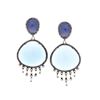 TANZANITE, CHALCEDONY AND DIAMOND EARRING/**/Diamond 1 CTW:3.86/Diamond Color & Clarity:J-L/I1-I2(Single Cut)/Diamond Count 2:/Diamond 2 CTW:/Diamond Color & Clarity:/Gemstone Count1:/Gemstone 1 CTW:79.83/Gemstone Count 2:/Gemstone 2 CTW:/Metal Type 1 Gold:18k Yellow Gold /Gold Gram Weight:2.18/Metal Type 2:over 0.925 Sterling Silver/Silver Gram Weight:10.48/Gross Weight: 29.39