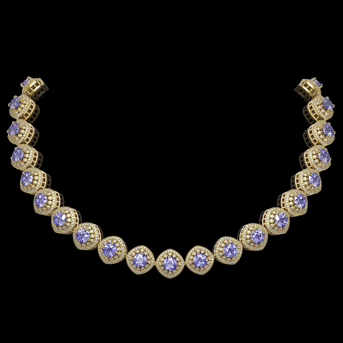 REF-2511F8M - SKU: 44107 ---- 83.82 ctw Tanzanite & Diamond Victorian Necklace 14K Yellow Gold
