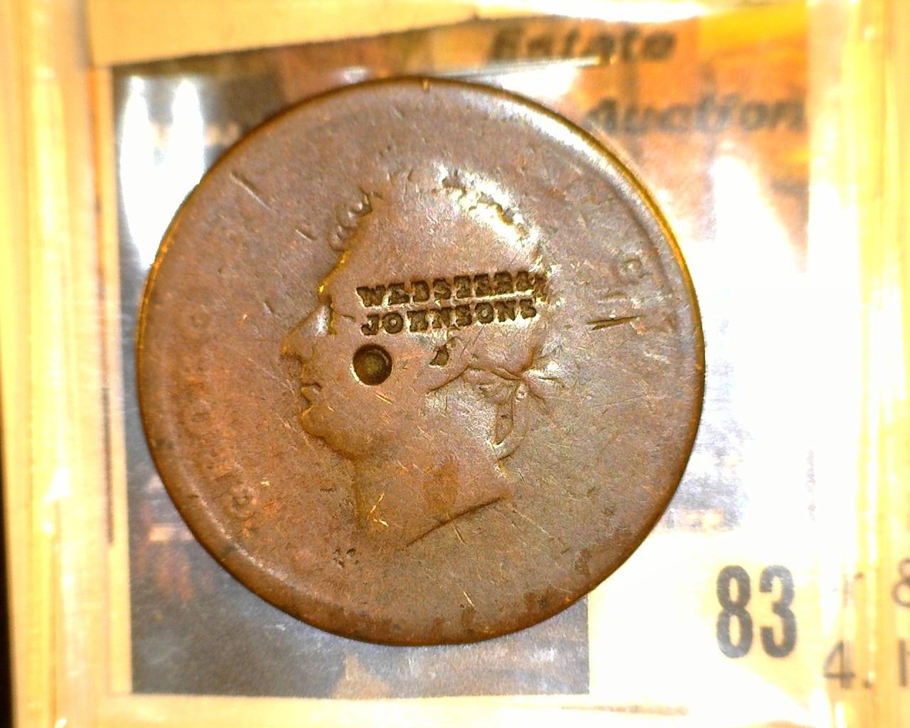 83. Great Britain Large Penny of King George IV countermarked "Webster &/Johnsons", According to