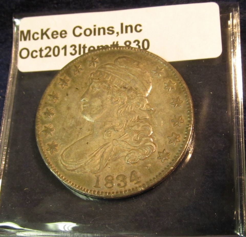 830. 1834 Capped Bust Half Dollar. EF-AU. Reverse scr. Redbook Value $180-350.00.