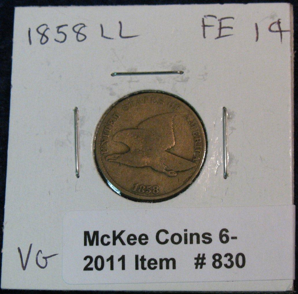 830. 1858 LL Flying Eagle Cent. VG.