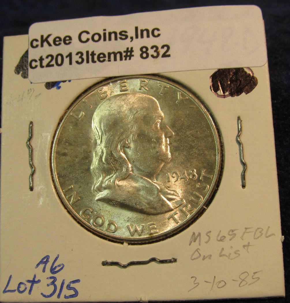 832. 1948 D Franklin Half Dollar. Brilliant Unc with Full Bell Lines.
