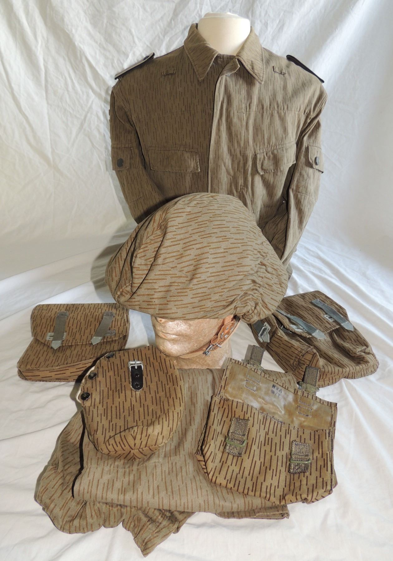 RAIN CAMOFLAUGE HELMET COVER, HELMET, UNIFORM JACKET, PANTS, AMMO POUCHES WATER BOTTLE COVER ETC COLD WAR ERA COMMUNIST FORCES EAST GERMAN GERMANY