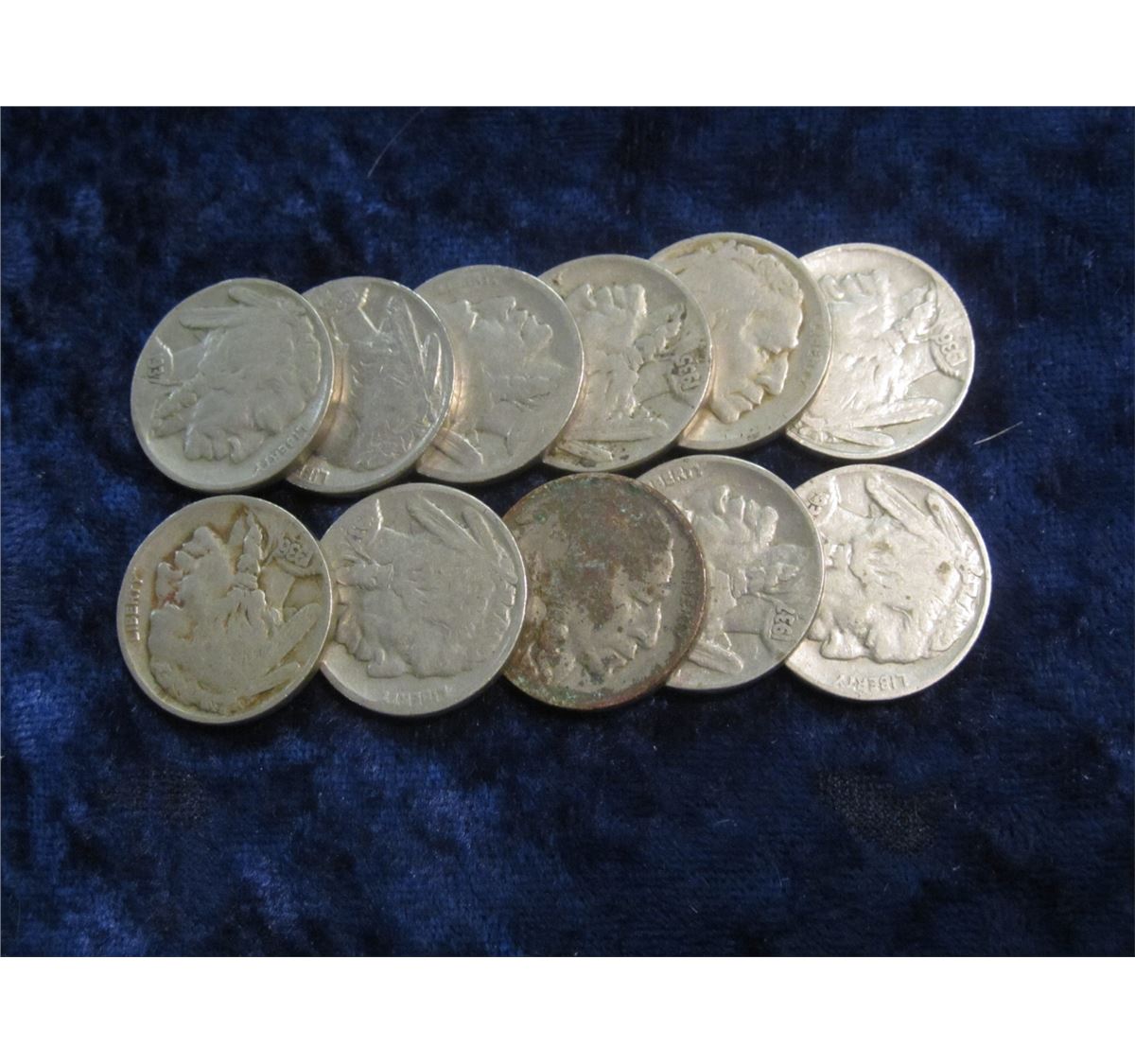 84. (11) Buffalo Nickels chased by Indians. Variety of dates.