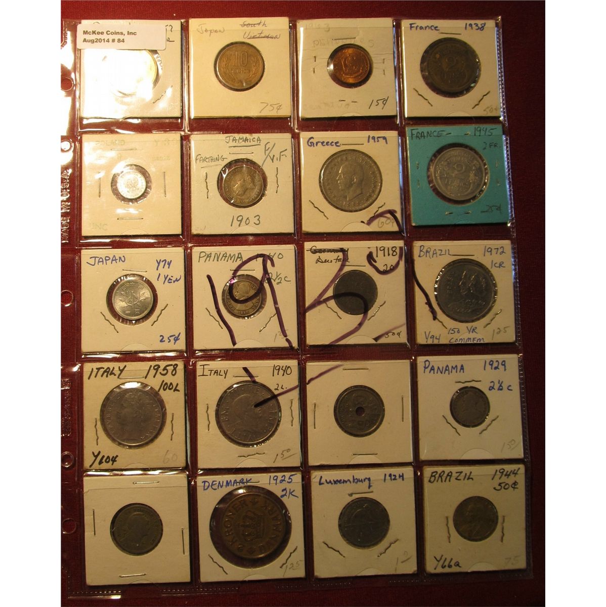 84. (20) Various Foreign Coins from countries such as Denmark, Japan, France, Italy, Denmark & etc.