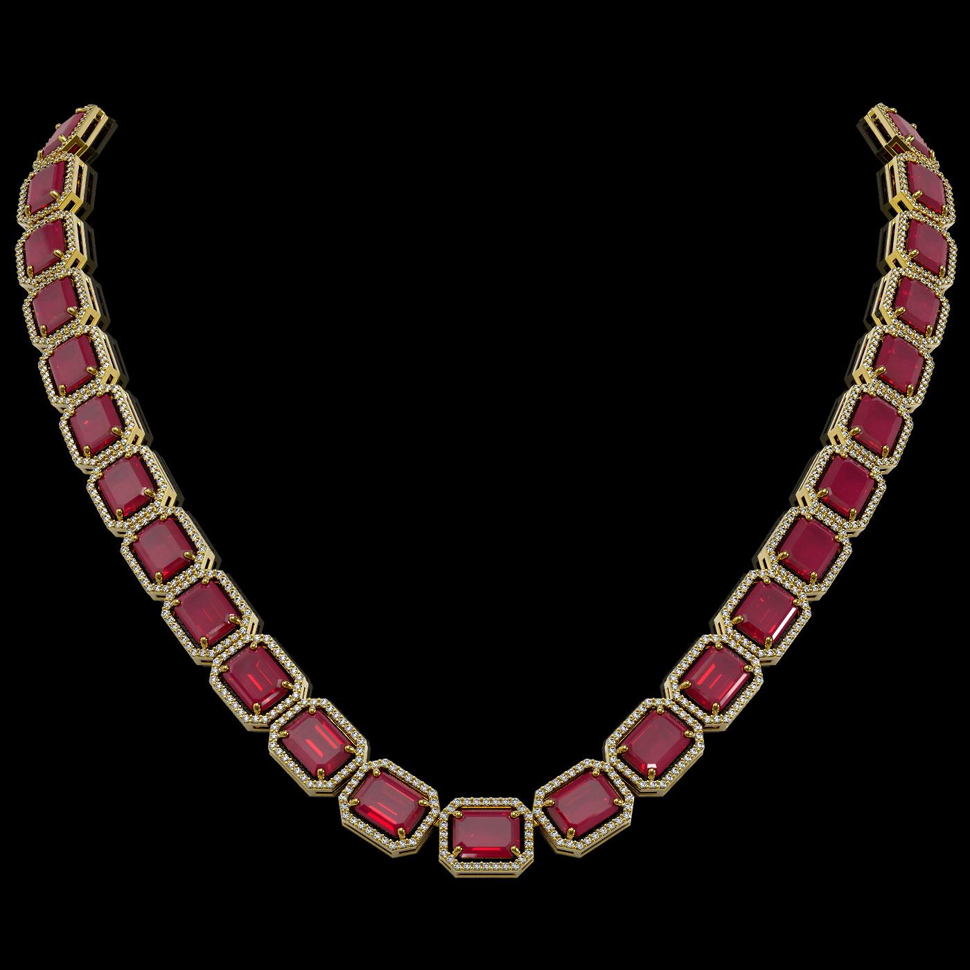 REF-930G2W - SKU: 41479 ---- 84.94 ctw Ruby & Diamond Micro Pave Halo Necklace 10k Yellow Gold