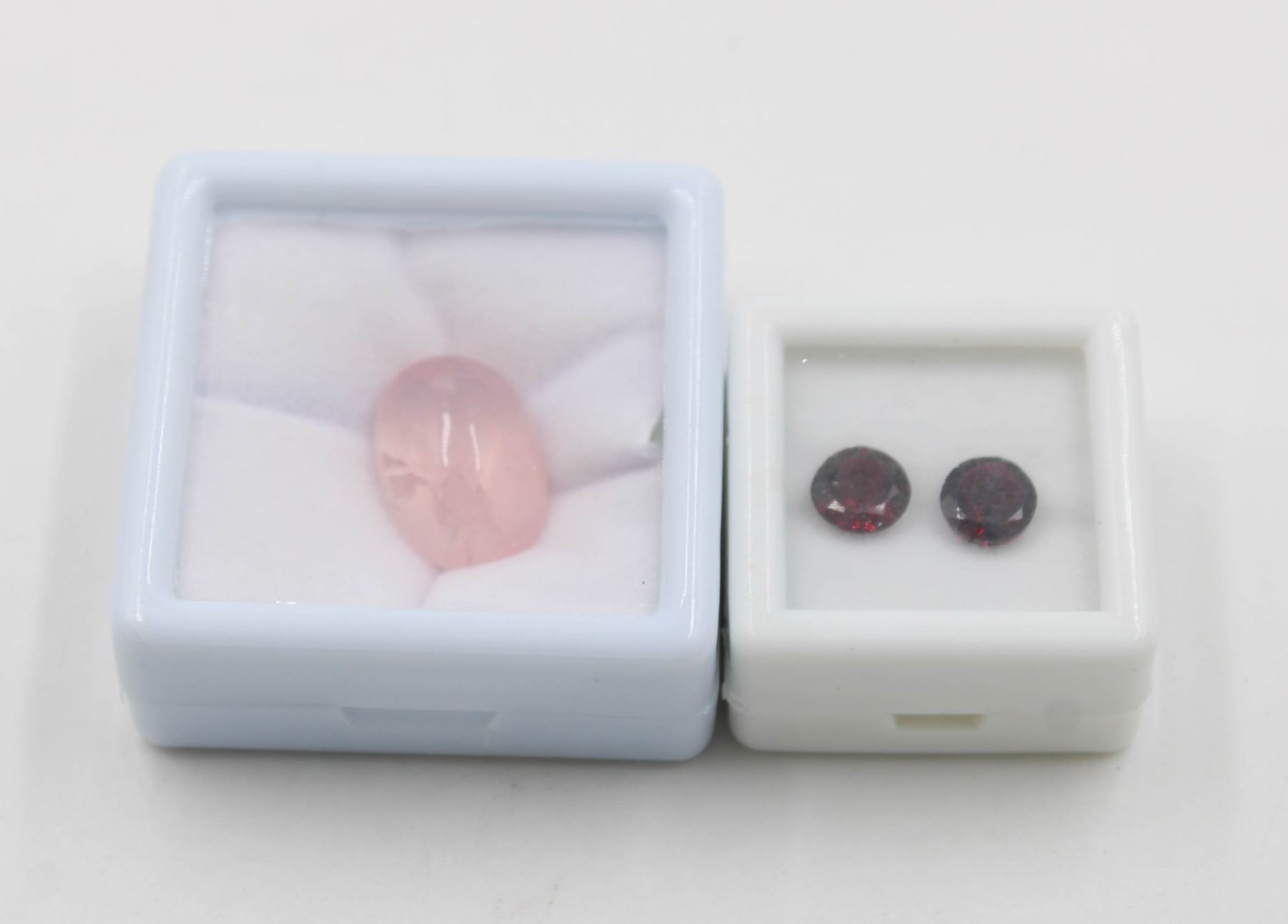 PINK ROSE QZ 12.10 CT UNTREATED STONES / GARNET 7 MM / LARIMAR 7 X 13 MM