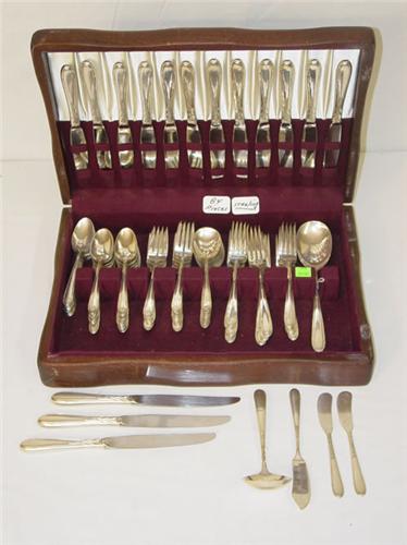84 PC. ONEIDA STERLING FLATWARE SET-HEIRESS PATTERN TO INCLUDE (15) DINNER FORKS, (14) SALAD FORKS, (15) KNIVES, (9) CREAM SOUPS, (25) TEASPOONS, (2) BUTTERS, (1) MASTER BUTTER, (1) GRAVY LADLE, SM. & LG. SERVING SPOON, 79 TROY OZ. (NOT INCL. KNIVES)