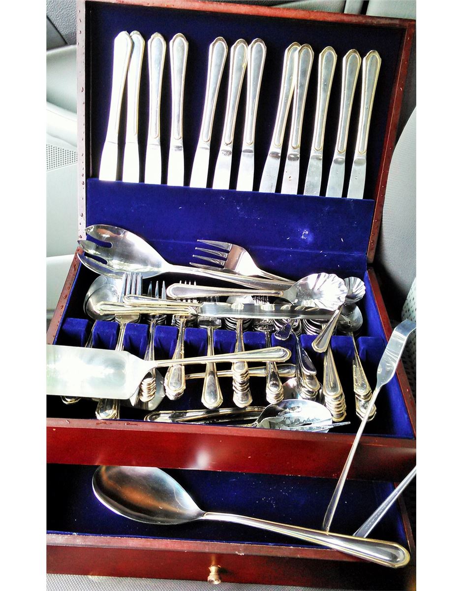 84 PIECE SETTING OF HAMPTON SILVERSMITHS STAINLESS SILVERWARE SET WITH CASE