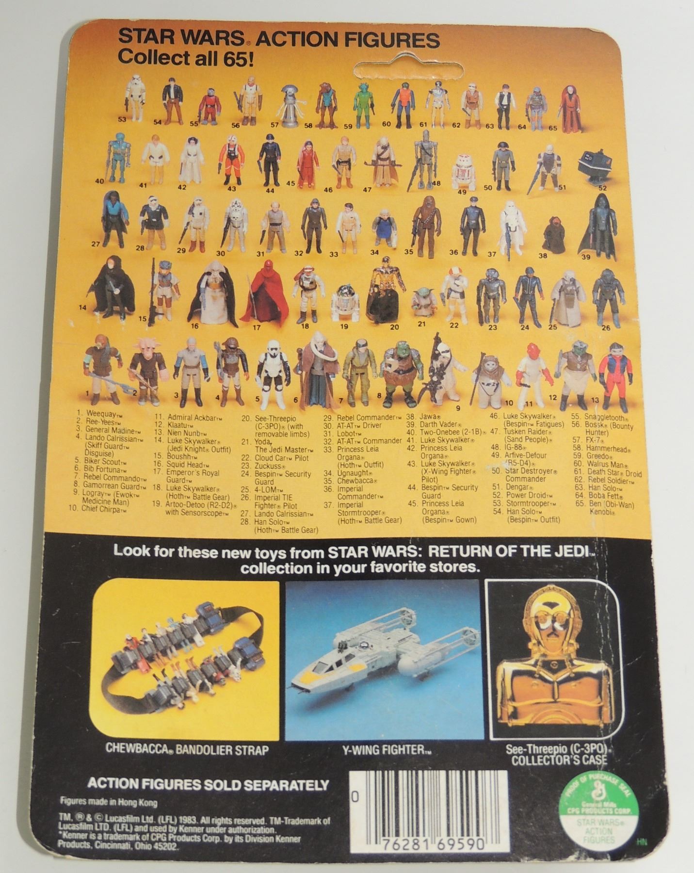 CARDED 65 BACK STAR WARS RETURN OF THE JEDI KENNER ACTION FIGURE COMPLETE W/ PROTECTIVE CASE