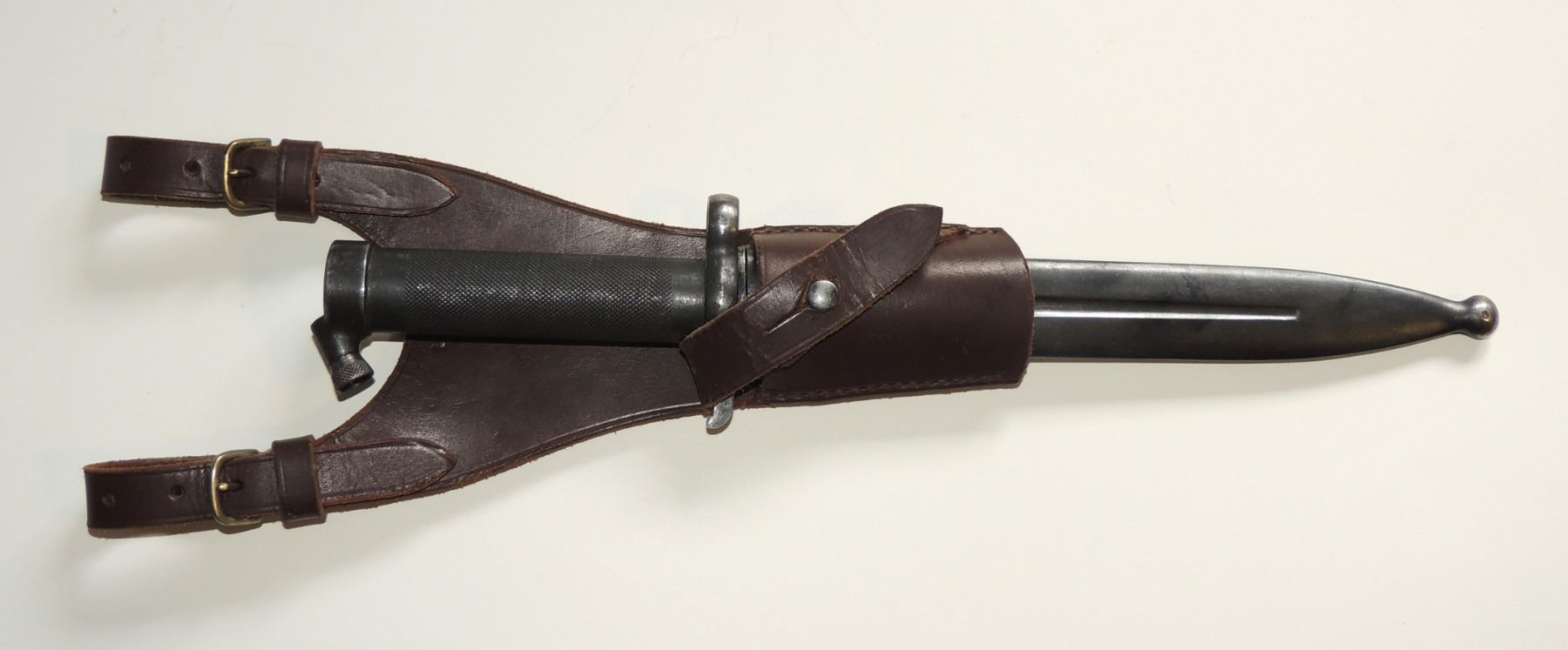 14 INCHES BAYONET EJAB MARKED W/ SCABBARD AND LEATHER BELT FROG EUROPEAN EUROPE MILITARY ARMY ARMED FORCES