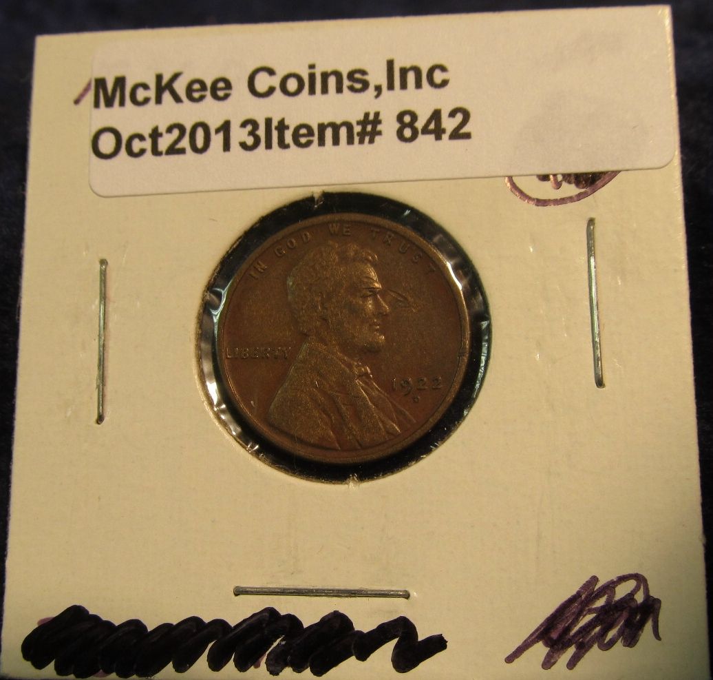 842. 1922 D Lincoln Cent. VF-20. Small obv. scr.