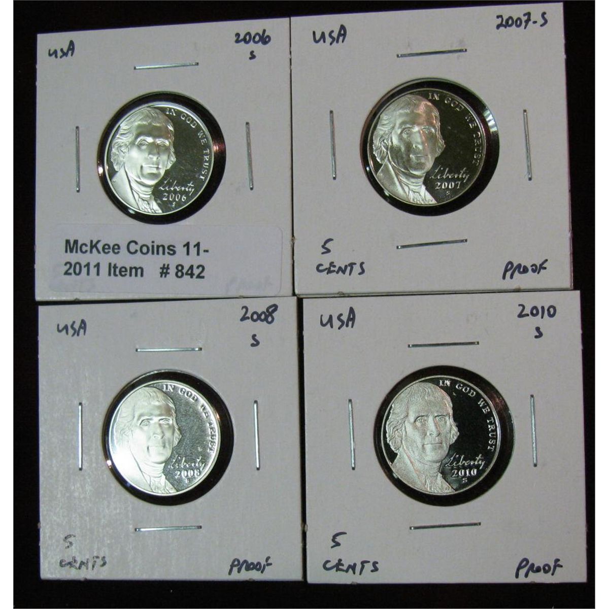 842. 2006S, 07S, 08S & 10S Jefferson Nickels. Proof