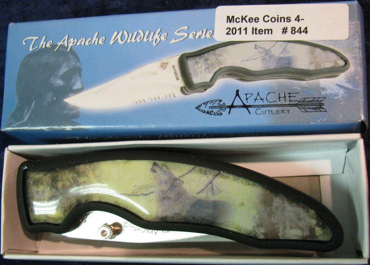 844. Apache Cutlery Wild Life Series Wolf. 4 1/2" Folding Knife.