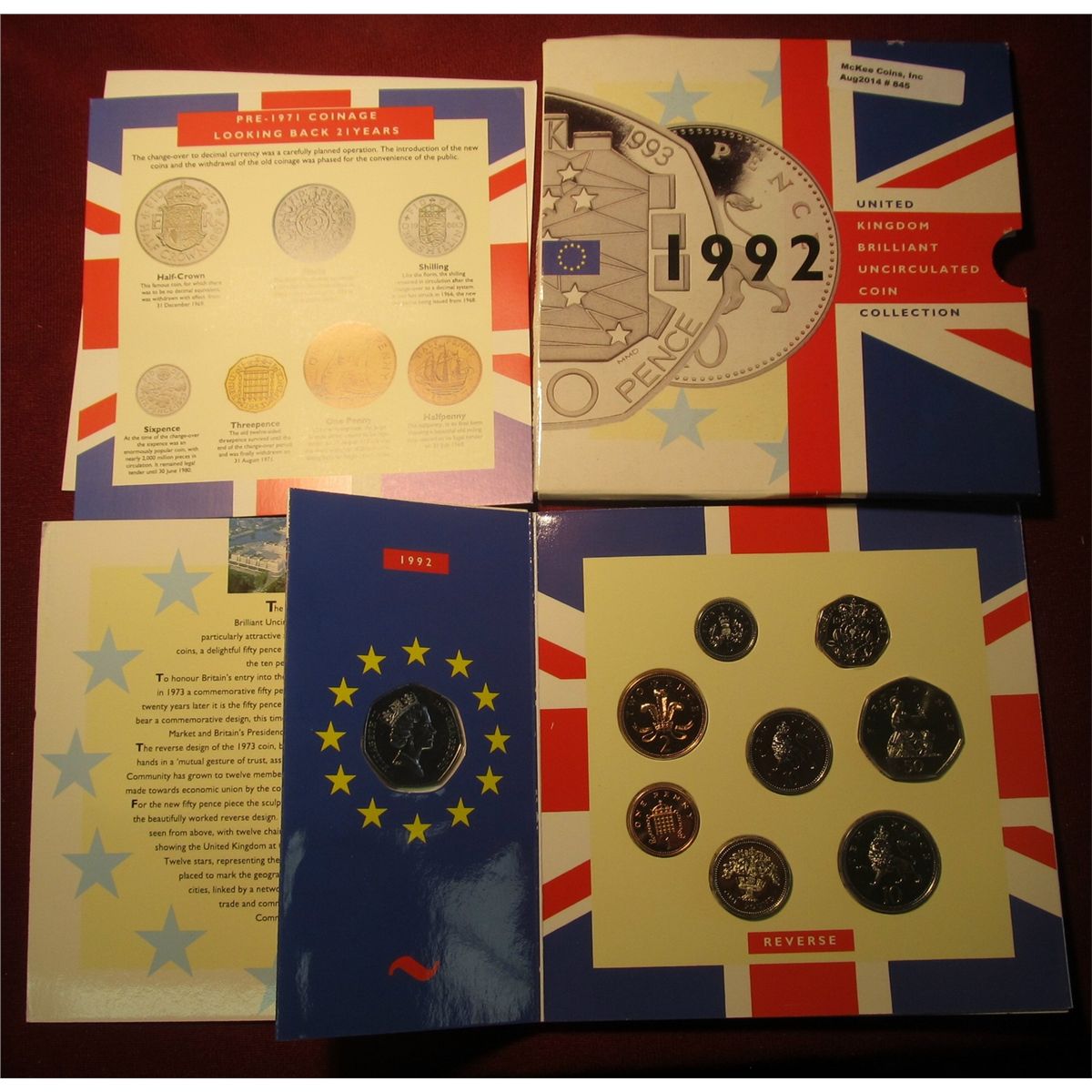 845. 1992 United Kingdom Brilliant Uncirculated Coin Collection, in original packaging