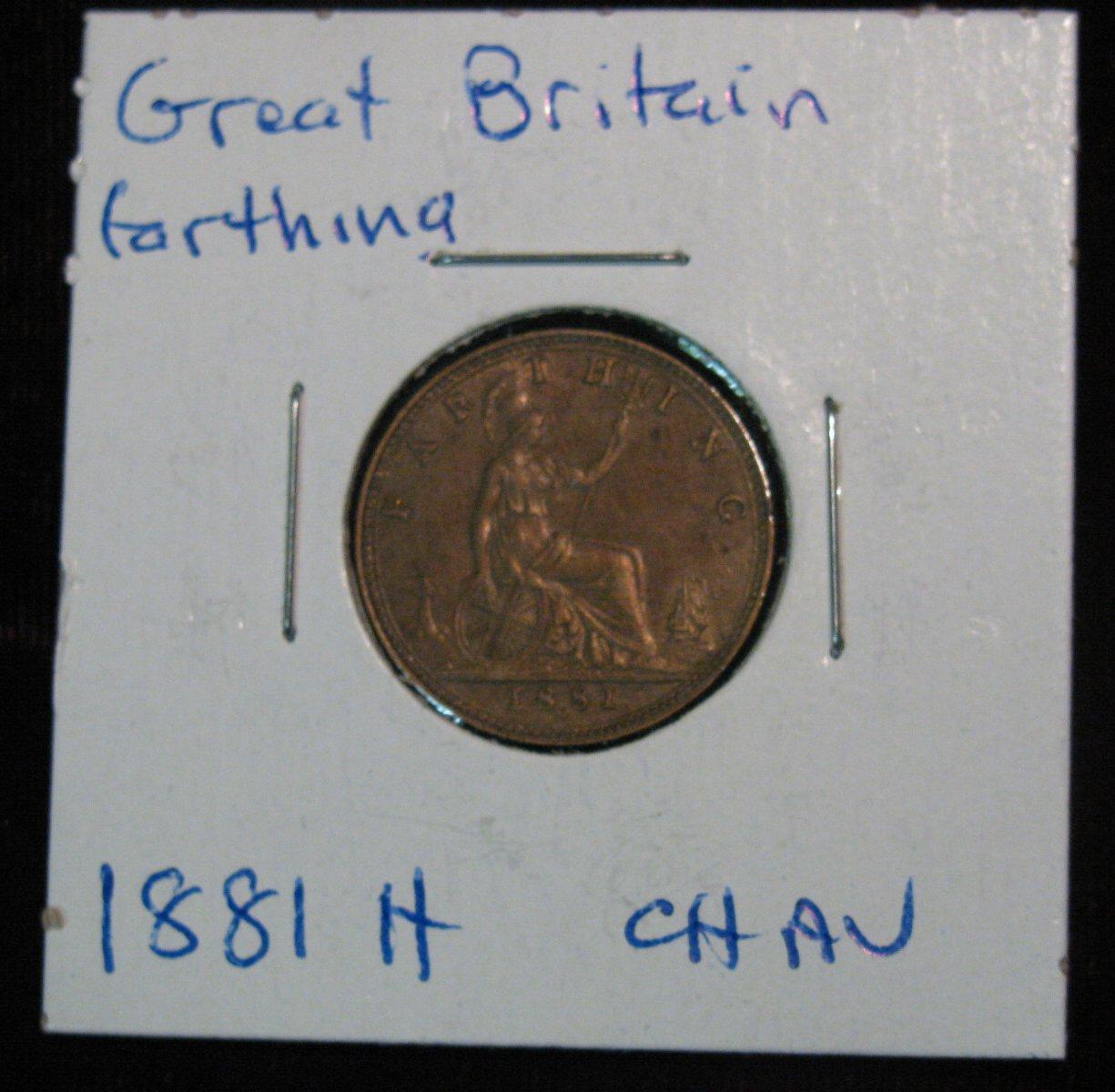 848. 1881H British Farthing. Choice AU.